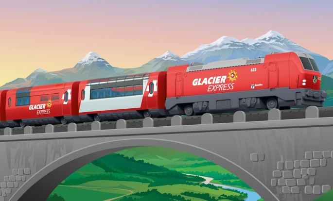 Die Fahrgäste genießen die herrliche Kulisse der Schweizer Alpen durch die riesigen Fenster der beiden Panoramawagen. Die frische Bergluft macht natürlich hungrig. Im Speisewagen werden die Passagiere mit landestypischen Spezialitäten verwöhnt. Und während die Mitreisenden beim Anblick von Bergen und Tälern herrlich entspannen, überwindet der Glacier Express dank der starken Elektrolok scheinbar mühelos die enormen An- und Abstiege.
